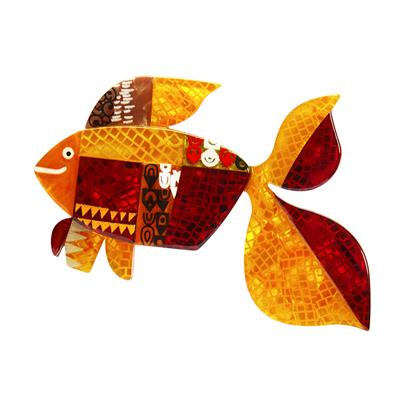 "Dive into whimsy with A Goldfish Named Silence Erstwilder Brooch! This quirky accessory boasts a playful design and a touch of humor with its tongue-in-cheek name. Perfect for any outfit, this brooch adds a dash of fun to your day while keeping your secrets safe. with this bright Erstwilder statement piece!"