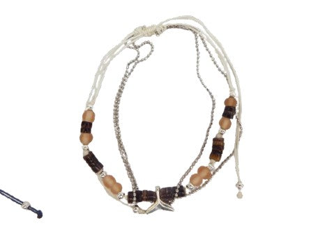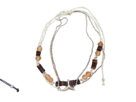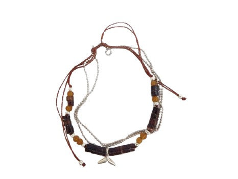 "Add a touch of whimsy to your beach look with our A174 anklet. Made with seaglass and sell beads, it features a charming whale and turtle charm. Perfect for ocean lovers, this anklet adds a playful twist to any outfit."