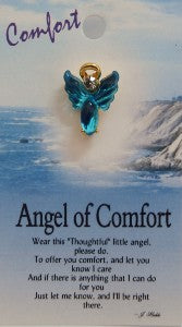 Angel of Comfort Guardian Angel A thoughtful little angel lapel pin brooch to wear, to convey thoughts and wishes to someone special. A gold plate little guardian angel lapel pin with select verse for every occasion, sprinkled with Angel Dust to send on its way. This is a lovely thoughtful angel pin to send to someone feeling a little down or just because