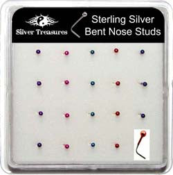 Anodized Sterling Silver Ball L-Shape Nose Studs