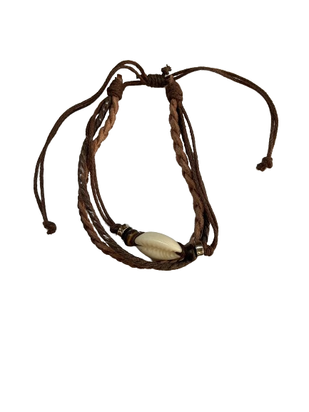 Cowrie up your look with our B285 bracelet! Featuring a naturally designed cowrie charm and a multi-strand leather cord with a metal bead, this bracelet comes in 4 color combinations to perfectly complement your style. Plus, the adjustable slipknot allows for a comfortable fit. Get yours now in Cream/Brown, Brown/Tan, Black/Brown, or Black/Black.