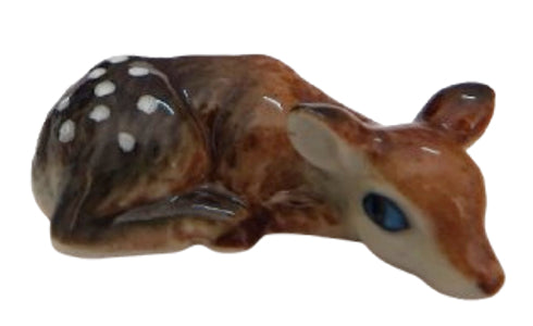 Add a touch of whimsy to your space with the Bambi Lay Head Miniature Figurine. This adorable baby deer fawn is crafted from porcelain, making it a cue addition to any collection. Perfect for animal lovers, this figurine is sure to bring a smile to your face.