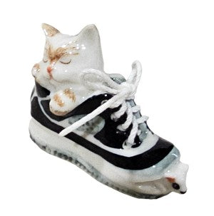 Cat Sleeping in Sand Shoe porcelain Miniature Figurine