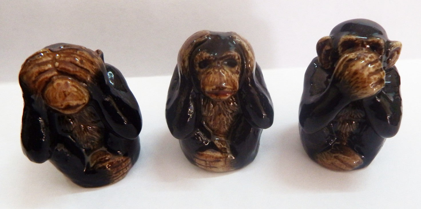 Classic Chimpanzee Monkey Set Hear No, Speak No & See No Evil porcelain figurines - great addition to any collection or gift for the monkey lover