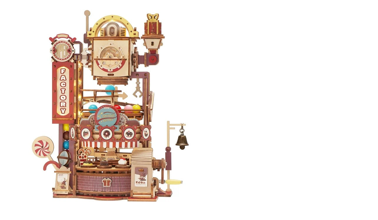 Chocolate Factory Rokr marble Run kit the golden Robotime ticket to indulge in as many chocolate candy coloured marble sweet treats as you want. A ROKR Chocolate Factory marble run 3D wooden puzzle kit will provide you with everything you need to build a cool steampunk-style factory with style.