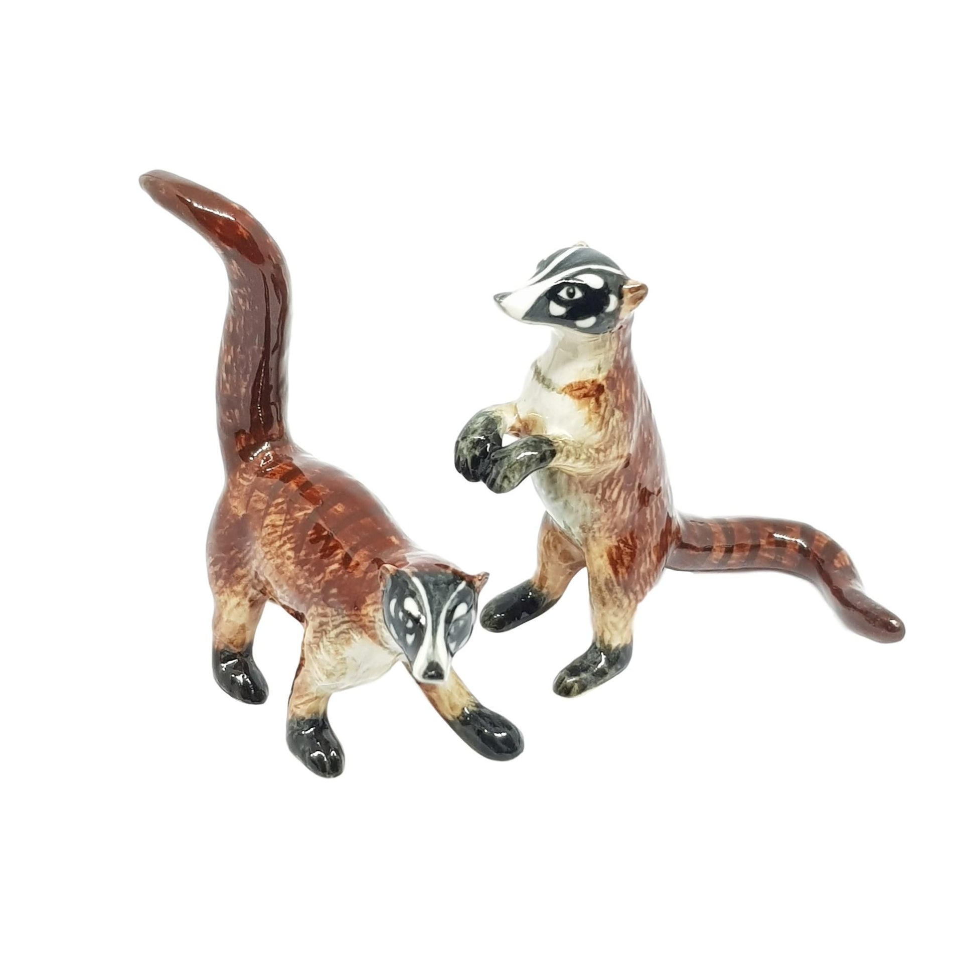 This Set 2 Coati porcelain miniature figurine is an adorably quirky addition to the cute critter clan shelf. Each figurine is crafted with care and artistry, so you know you're adding something special to your home.