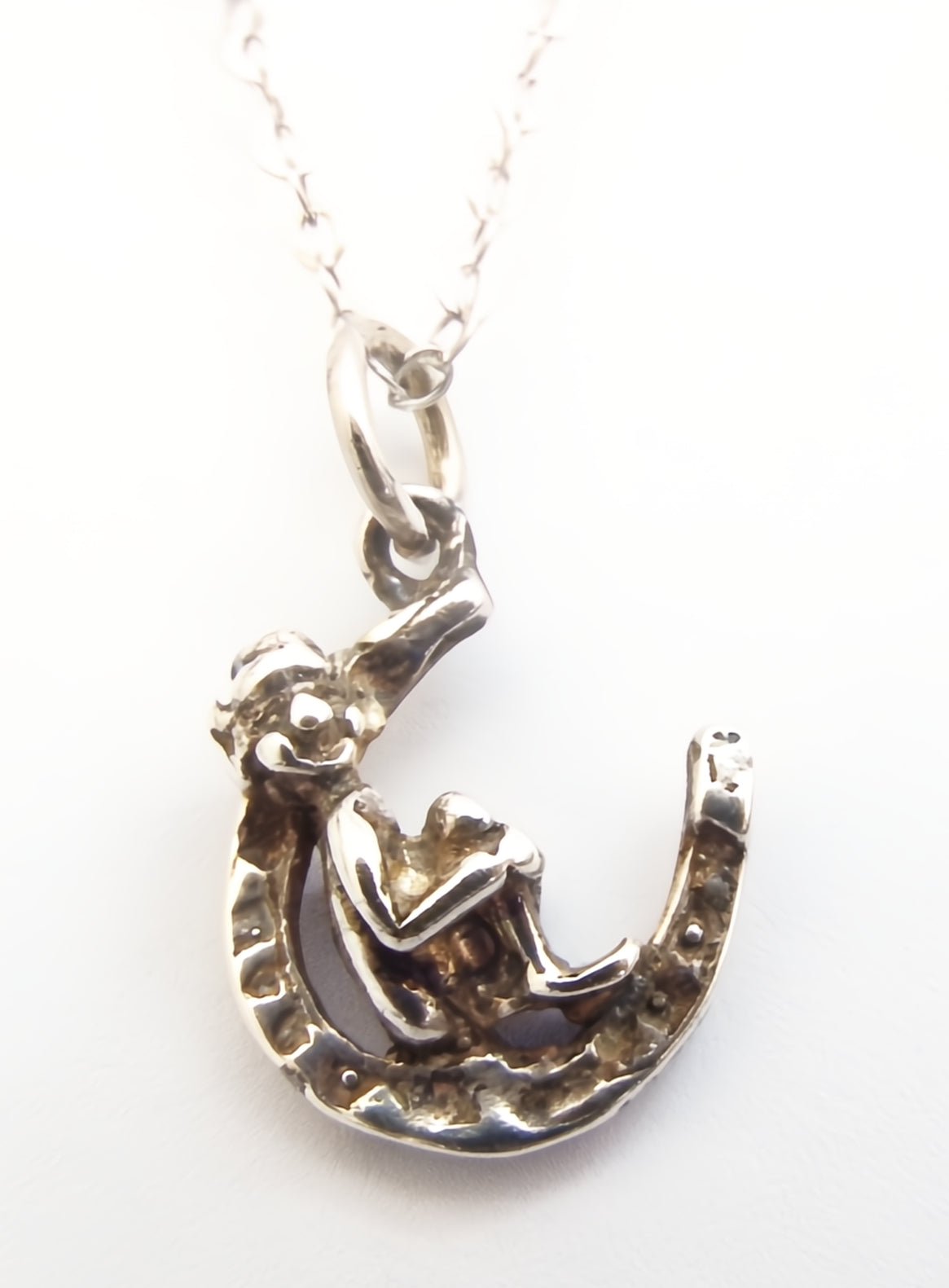 Shake up your jewelry game and add some playful magic & mischief to your style with the Cornish Piskie sitting in a horseshoe Sterling Silver necklace. Perfect for lovers of all things mystical and mischievous Wear it close to your heart for good luck and respect him, and he'll return the favor.,he's so kind.