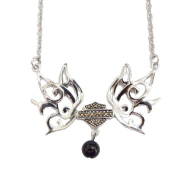 Franklin Mint Ladies Wings of steel Sterling Silver Pendant Necklace Chain 430mm with onyx bead