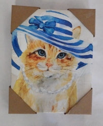 Ginger Cat Blue white Striper Hat Canvas Print