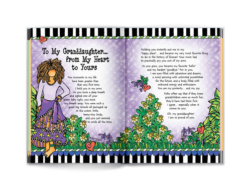 Granddaughter I Love you so much by Suzy Torno the author Suzy Toronto has filled this book with words of love and support for a granddaughter who is so precious in the eyes of her grandparents. Suzy’s bright and quirky illustrations add to the charm of this enchanting collection that will let a granddaughter know she is absolutely, positively, over-the-top amazing.