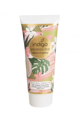 Indigo Organic Hand and Body Cream in Hibiscus & Lychee 100ml – Pink & Green Palm Pattern enrich your skin with Hibiscus & Lychee hand and body cream for moisturized and silky smooth skin. Say goodbye to dryness and hello to a refreshing cleanse!