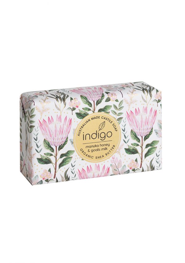 Indigo Organic Shea Butter Soap in Manuka Honey & Goats Milk 200g – Pink Protea Pattern