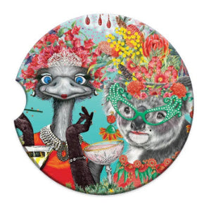 Drive in style with these Lisa Pollock Ceramic Car Coasters featuring adorable Emu and Koala darlings! Keep your car cup holders clean and add a touch of cuteness to your ride. Perfect for animal lovers and a fun addition to any vehicle. (Only for the coolest cars, of course.)
