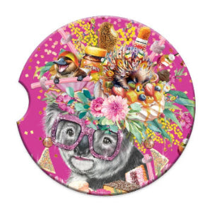 Rev up your car's style with our Lisa Pollock Ceramic Car Coaster featuring a food-loving koala design. Keep your cup holders tidy and add a touch of quirkiness to your ride. (Don't be surprised if other drivers go "koala-ty!" over it.)