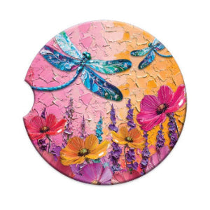 Rev up your car's style with the Lisa PollockCeramic Car Coaster featuring a playful dragonfly design. Keep your cupholders clean and your ride whimsical with this ceramic coaster. Perfect for any free-spirited driver.
