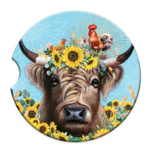 Add a touch of whimsy to your car with Lisa Pollock Ceramic Car Coaster Sunny Highland! These coasters feature a charming Scottish Highland Cow design, keeping your cup holders clean while adding a playful touch to any road trip. Measuring at 6.5cm, they fit most cup holders.