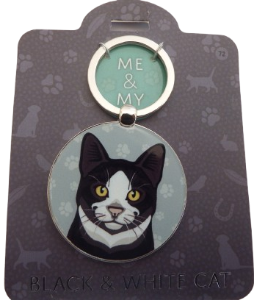 Me & My Pet Cat Keyring Black & White Cat to Keep your furry friend close to your heart with a Pet Keyring, featuring an adorable Black & White Cat keyring disc measuring 45mm. Made of stainless steel, this keyring is both durable and stylish. Now you can take your beloved pup with you wherever you go