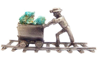 Take home a piece of the Moonta Mines South Australia experience with our Australian made souvenir Pewter Miner Pushing Copper Ore Mine Cart! This quirky cart comes filled with real copper ore Chrysocolla, making it both a fun and unique addition to your collection. L- 8cm * H- 3.5cm