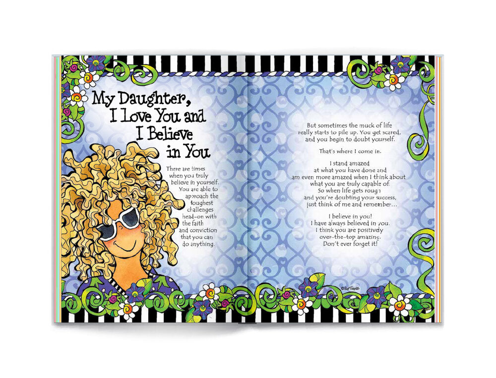 My Daughter, I Love You and I Believe in You by Suzy Toronto The author Suzy Toronto has filled this best-selling book with words of love, hope, and support to remind a daughter how special she is. Suzy's wonderful and wacky illustrations add to the charm and sentimentality, making this a gift every parent will want to give to their daughter.