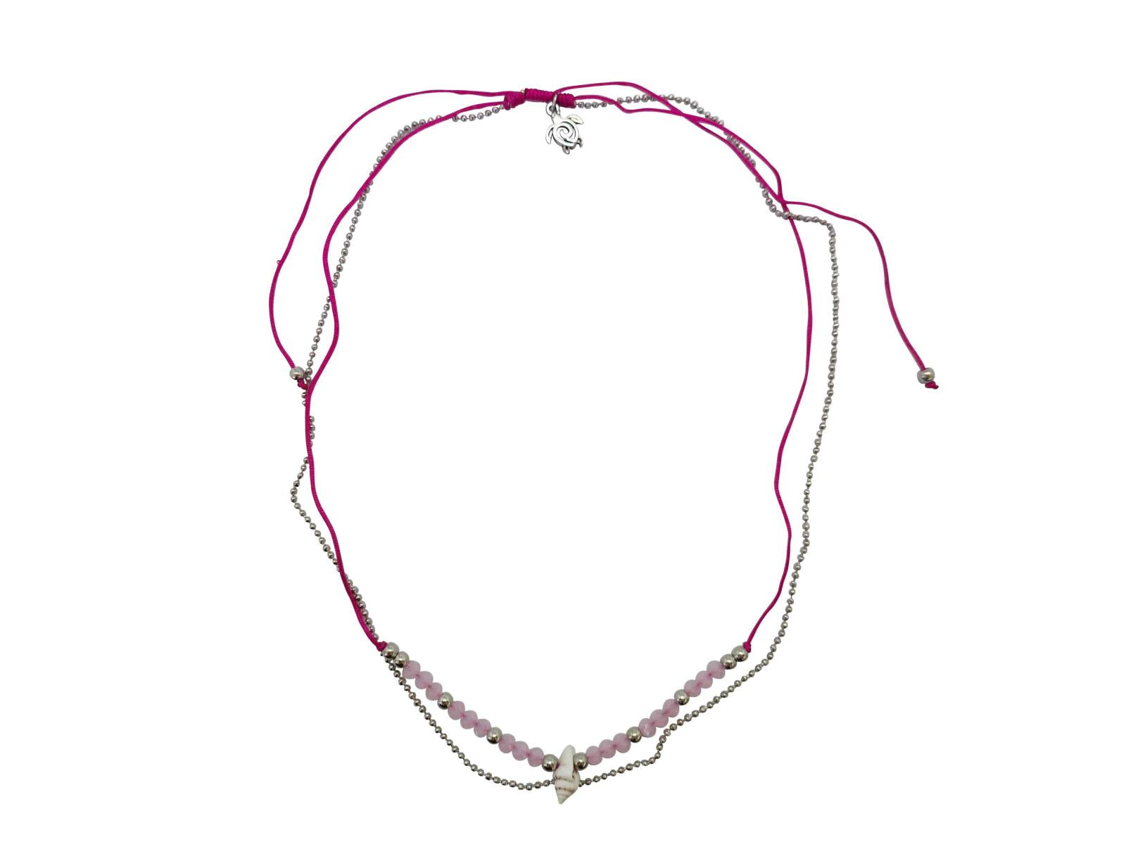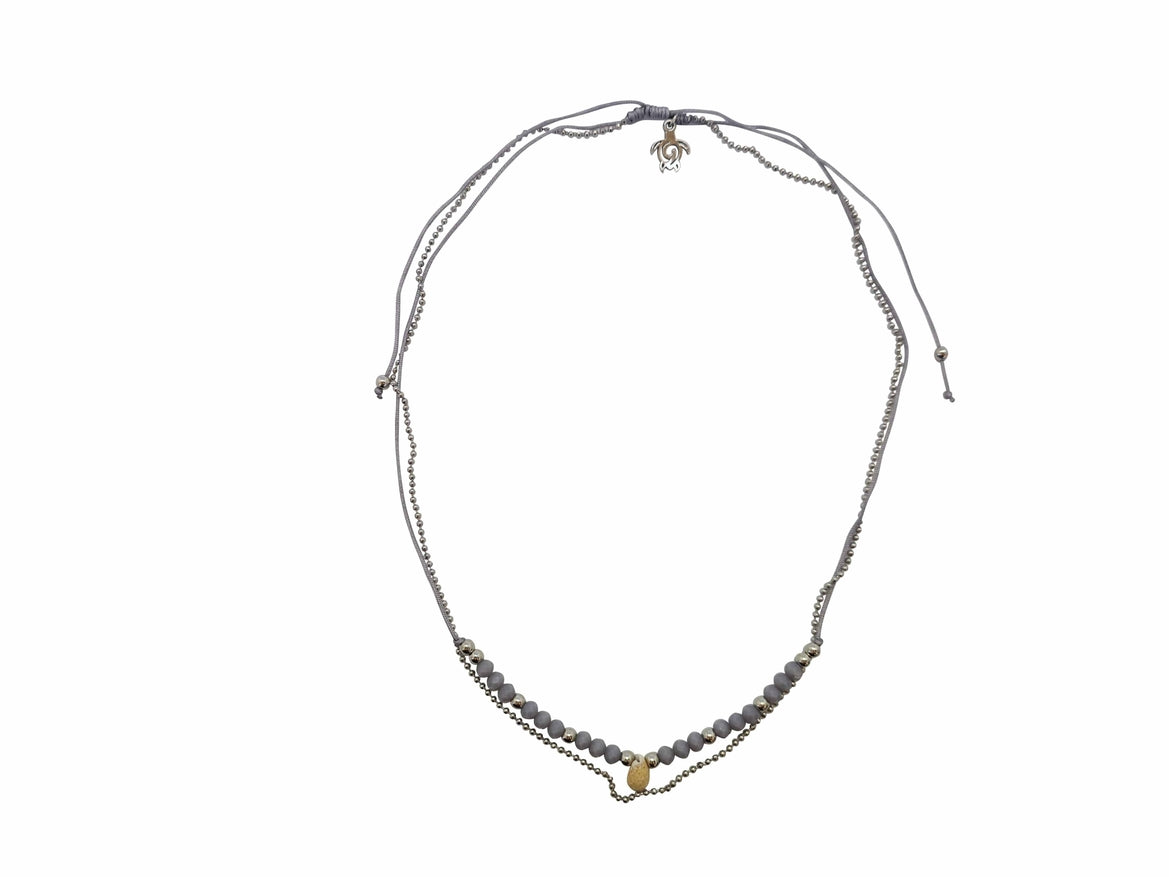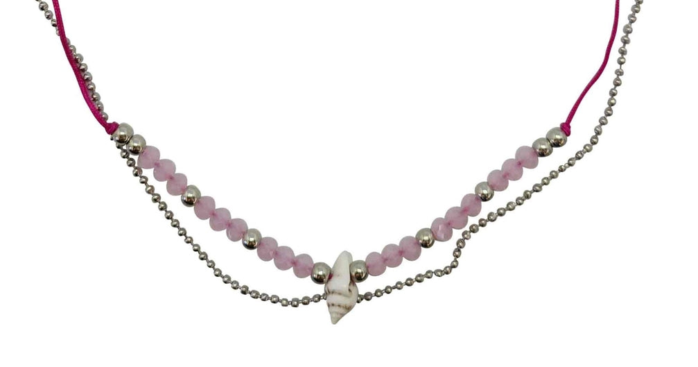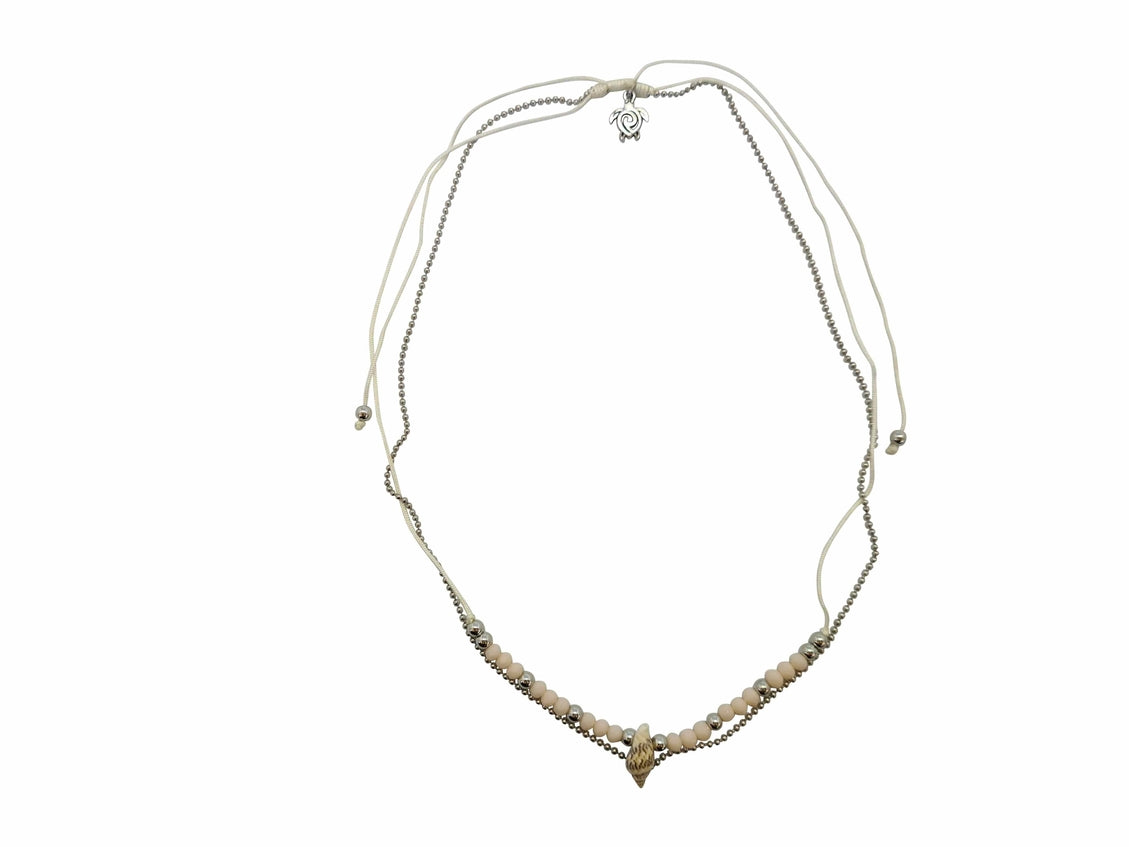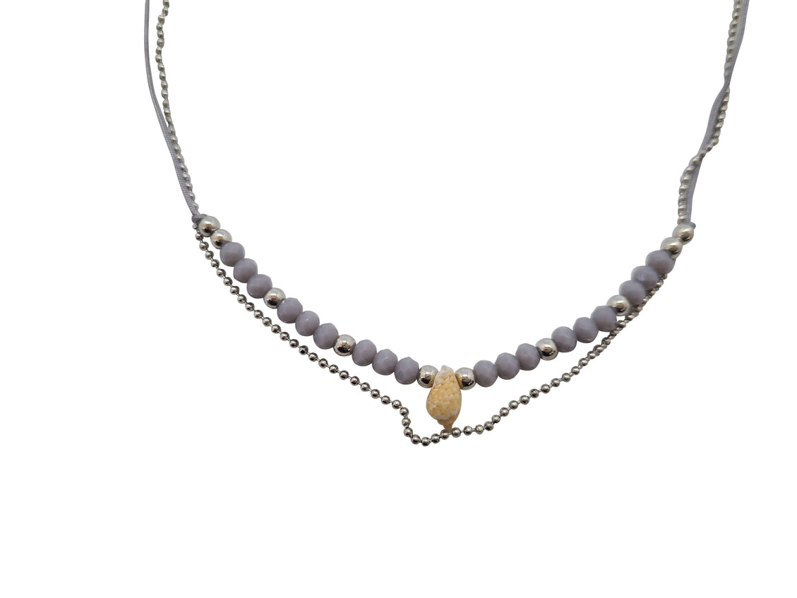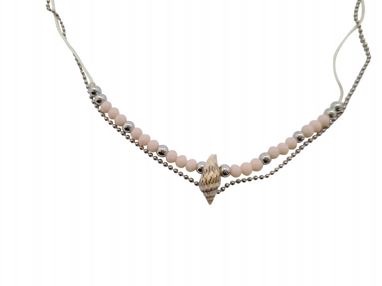 Add a touch of nature to your outfit with our N123 Necklet String. Delicate crystal and metallic beads complement a charming shell pendant. Choose from cream, grey, or pink. With a slipknot closure,