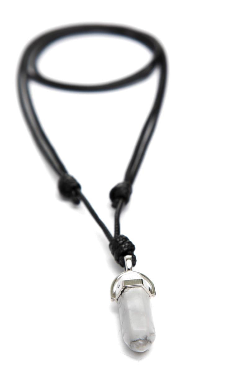 "Add some natural charm to your look with this unique necklace featuring a genuine gemstone pendant on a trendy black leather cord with a convenient slipknot closure. Choose from Onyx, Howlite, New Jade, or Tigereye for a touch of personal style. Adjustable length makes it the perfect fit for anyone.