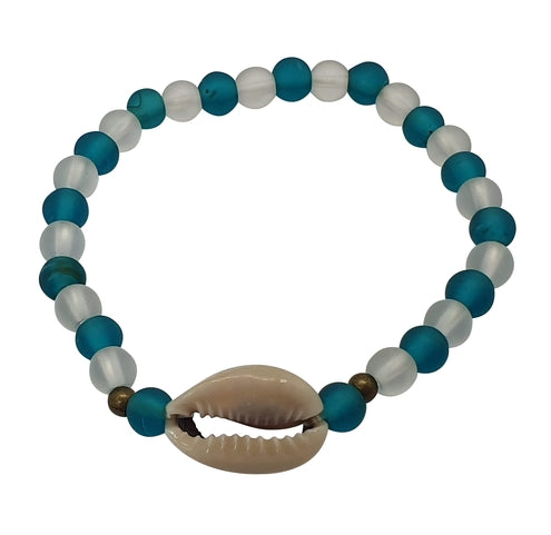 NB08 Bracelet seaglass with seaglass Cowrie Shell