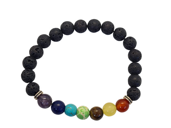 Add a touch of grounding and protection to your style with the chakra mens beaded bracelet. Made with natural lava stones and representing the seven chakras, this elasticated bracelet is comfortable to wear and perfect for any occasion. Wear it alone or stack it for a dramatic look.