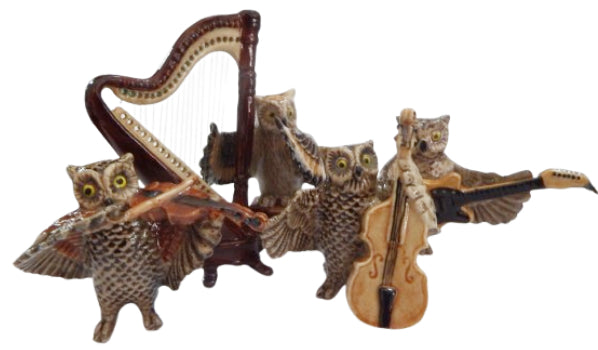 Owl Musicians 5 piece ceramic porcelain figurine set