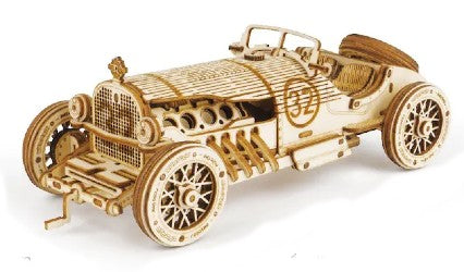 Rolife Grand Prix Car scale model a Robotime Wooden Kit a static wooden model hobby kit replicating a retro-pioneer sports car, Grand Prix Car. Vivid details with realistic structures,a 3d puzzle hobby kit which needs patience and dexterity for such a delicate scale model. Best gifts and hobby choice.