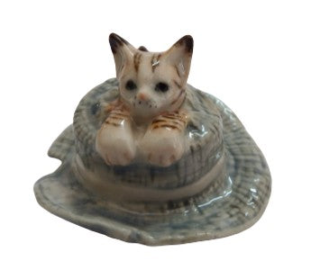 small cat Green hat ceramic Miniature porcelain figurine approx W 50mmxL52mmxH34mm