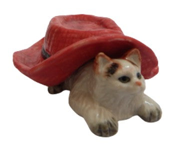 Small Cat red Hat ceramic miniature Animal Figurine