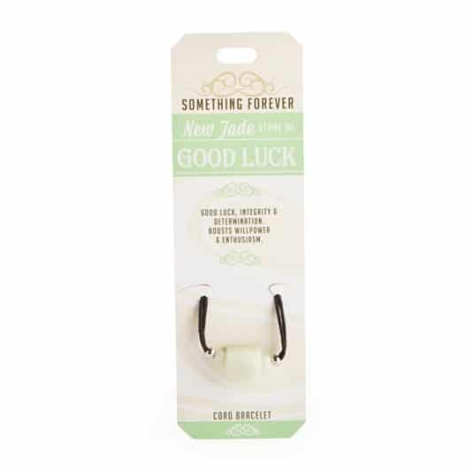 Something Forever – New Jade Cord Bracelet – Stone of Good luck. This stylish bracelet contains a New Jade stone and matching beads on a leather strap