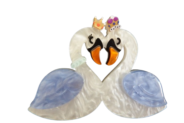 Fall in love with the Swan Love Erstwilder Brooch! This quirky and playful accessory features two elegant swans intertwining in a heart shape, making a statement of love and unity. With its unique design and high-quality craftsmanship, this brooch is the perfect addition to your outfit and will surely catch everyone's attention. A must-have for any animal or bird lover, this brooch is a playful way to show your love and style.
