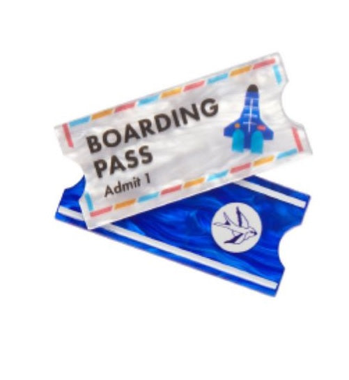 Boarding pass Erstwilder Brooch to Explore uncharted territories with a Ticket to Ride . Soar with the Blue Space Lady Captain to the Man on the Moon, escaping gravity on a rocket ride through the stratosphere, What a Blast!. Marvel at Globe of Earth on the horizon, and make new friends with a motley crew of extraterrestrial characters. Get ready for an amazing out-of-this-world adventure ! Boarding Pass Erstwilder Brooch An exclusive gift with purchase! To secure yours, simply spend $140 AUD or more on any Erstwilder Product online But it’s strictly while stocks last!