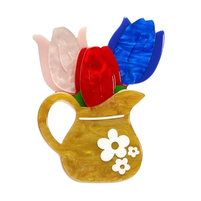 This Trio of Tulips Erstwilder Brooch brings vibrant colors and springtime flair to any outfit. The bold petals and delightful scent are sure to please both the eyes and nose. Tantalize your dress with this treat!